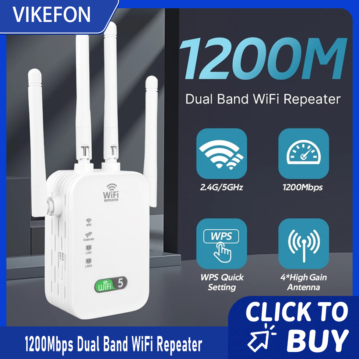 1200Mbps Dual Band Wireless WiFi Repeater 2.4G 5GHz Wifi Signal Amplifier Extender Router Network Wi-Fi Repetidor Long Range Wireless Wi-fi Repeater