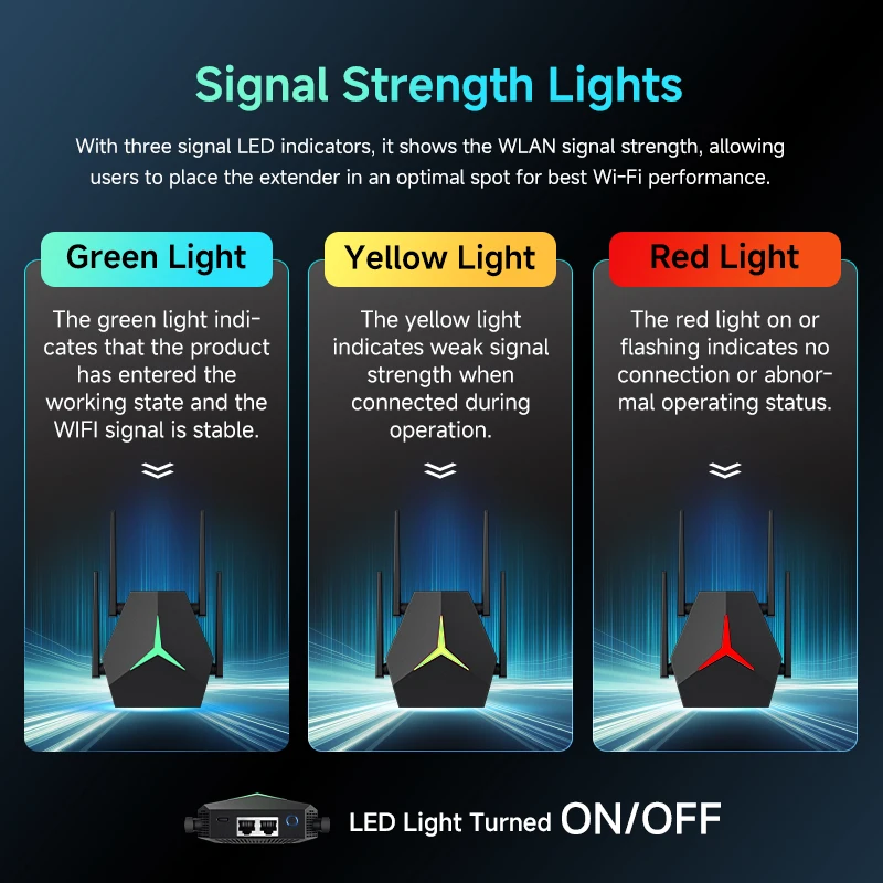 3.【High Performance】: Support wifi signal extending through the wall; the extending distance can be up to 30M,no more dead zones in your smart home life(speaker / monitoring / TV / doorbell / thermostat).4 External antennas for better performance, reliable wireless network speed up to 1200Mbps covering your bedroom, floors, restroom, garage and garden.