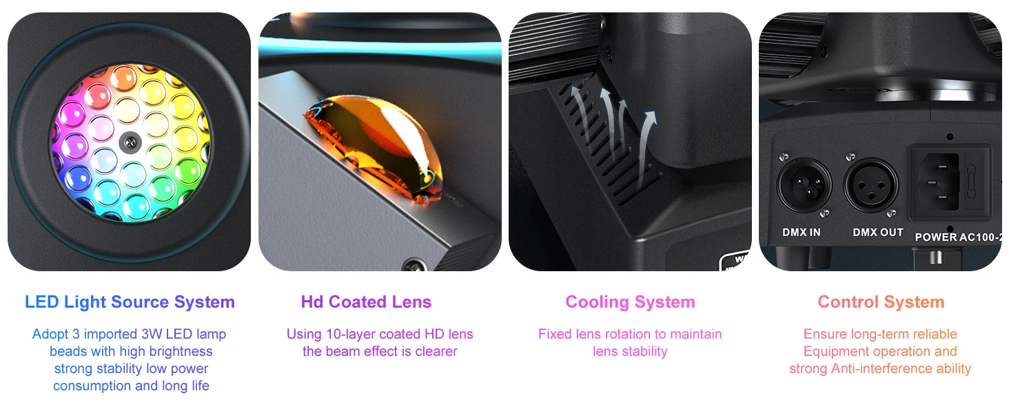 Features an impressive X-axis rotation of 540° and Y-axis rotation of 180°, ensuring dynamic and mesmerizing lighting effects.