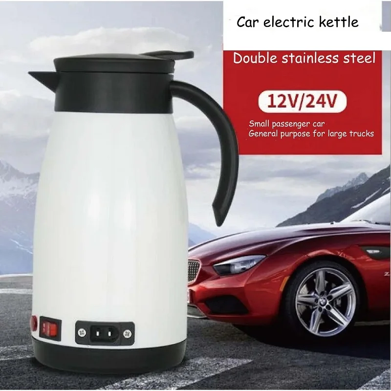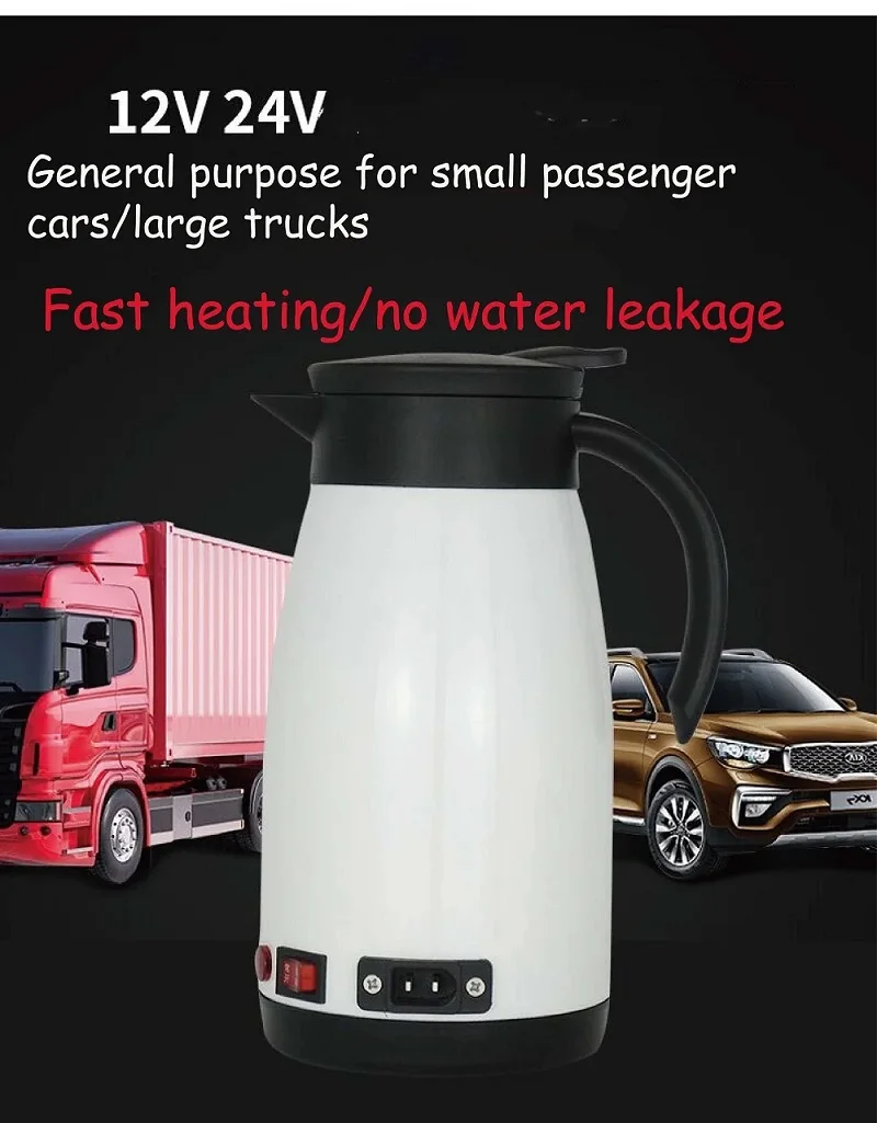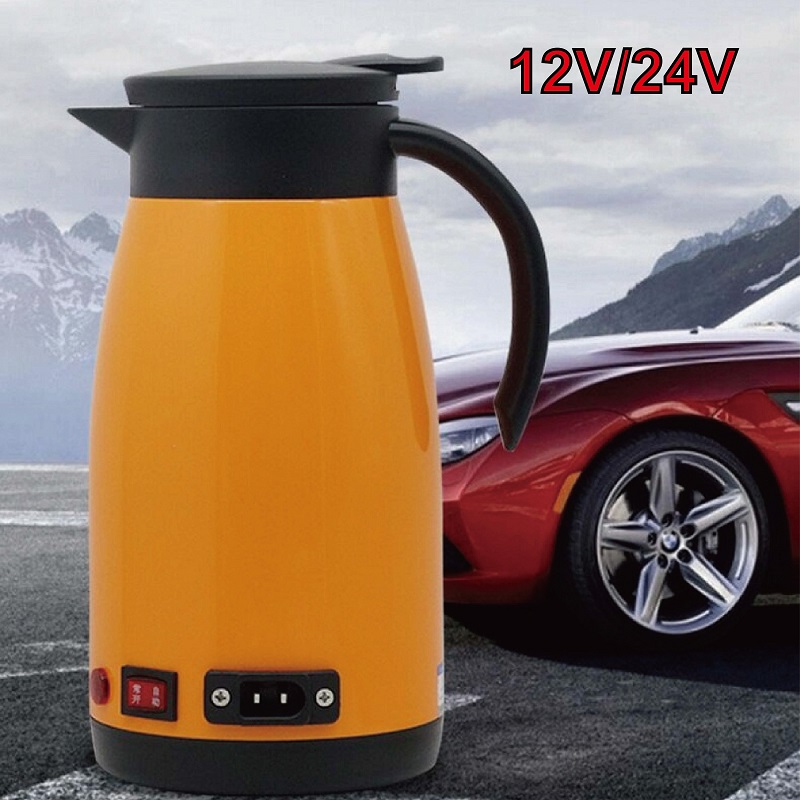 12V 24V Car Electric Kettle 304 Stainless Steel Boiling Kettle Camping Coffee Parts With Cigarette Lighter Heating Kettle 680ml