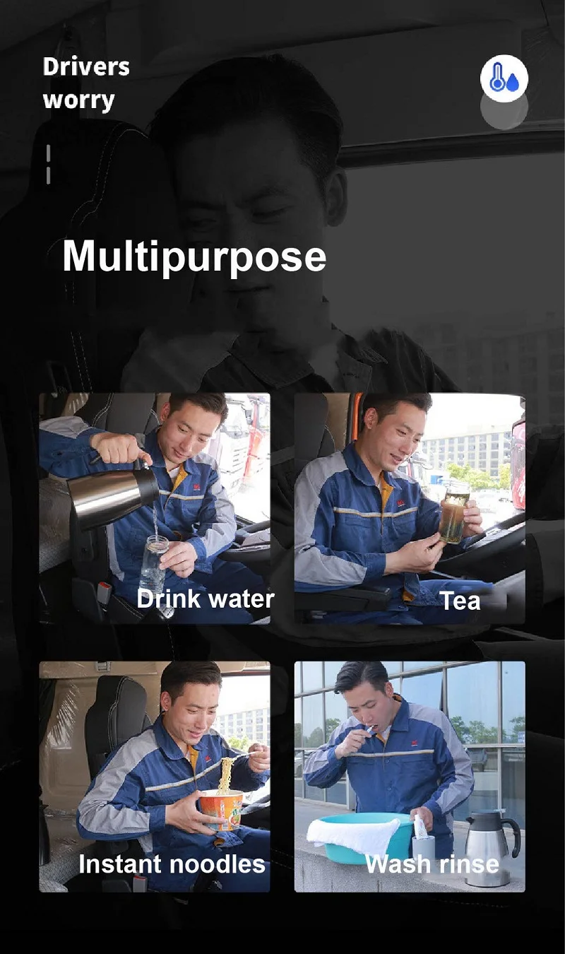 12V 24V Car Kettle Car Water Heater Kettle Large Truck Car Portable RV Stainless Steel Electric Kettle 1200ML