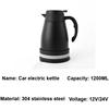 12V 24V Car Kettle Car Water Heater Kettle Large Truck Car Portable RV Stainless Steel Electric Kettle 1200ML