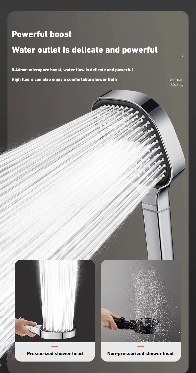 This is one if the best showerheads ever!Our apartment managers turned down our water pressure to save costs,but it was miserable taking a shower and not feeling fully clean.Instead of petitioning to increase the pressure,we bought this to see if it could increase the pressure.It sure did!It is incredibly strong and feels like a spa experience with the 3 settings.It was very easy to install and affordable.5 stars!