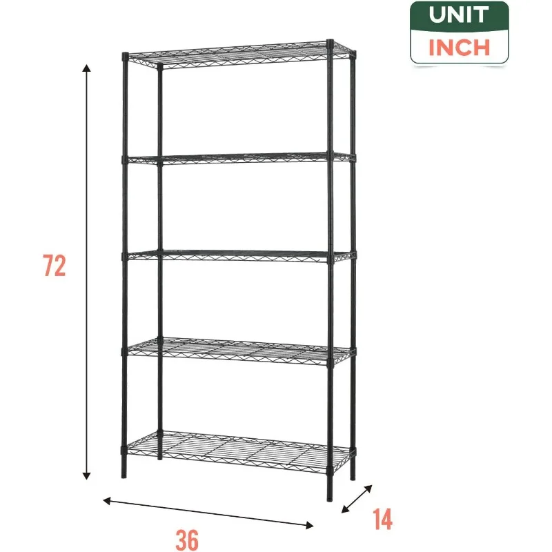 14″ D×36″ W×72″ H Wire Shelving Unit Commercial Metal Shelf with 5 Tier Adjustable Layer Rack Strong Steel for Restaurant Garage Pantry Kitchen Garage,Black