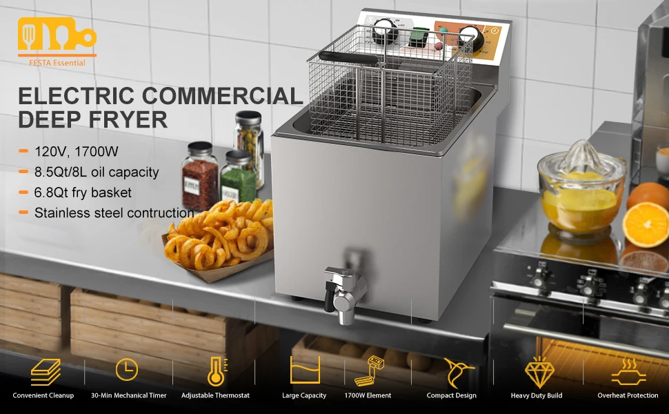 Whether you own a large restaurant, sports bar, food truck, or concession stand, this Festa Essential deep fryer will allow you to fry up your signature entree, appetizer, or side dish with confidence!