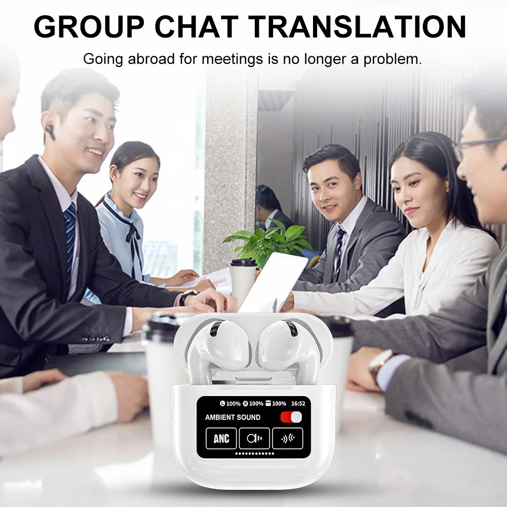 144 Languages Real Time Translation Earbuds ANC Noise Cancelling AI Translator Device Smart Voice Translator for Travel Business