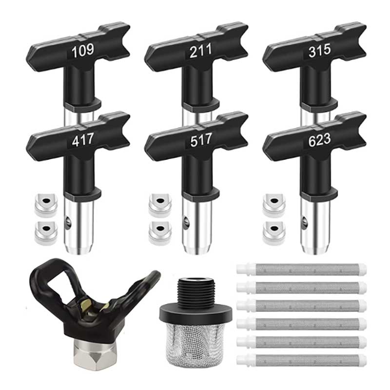 【Practical Performance】: Featuring a variety of tip types: 109,211,315,417,517,623, the spray paint tips set allows for precise spraying tailored to different aperture sizes. Regular replacement of the sprayer filter prevents nozzle clogging, ensuring smooth and clear spray results.