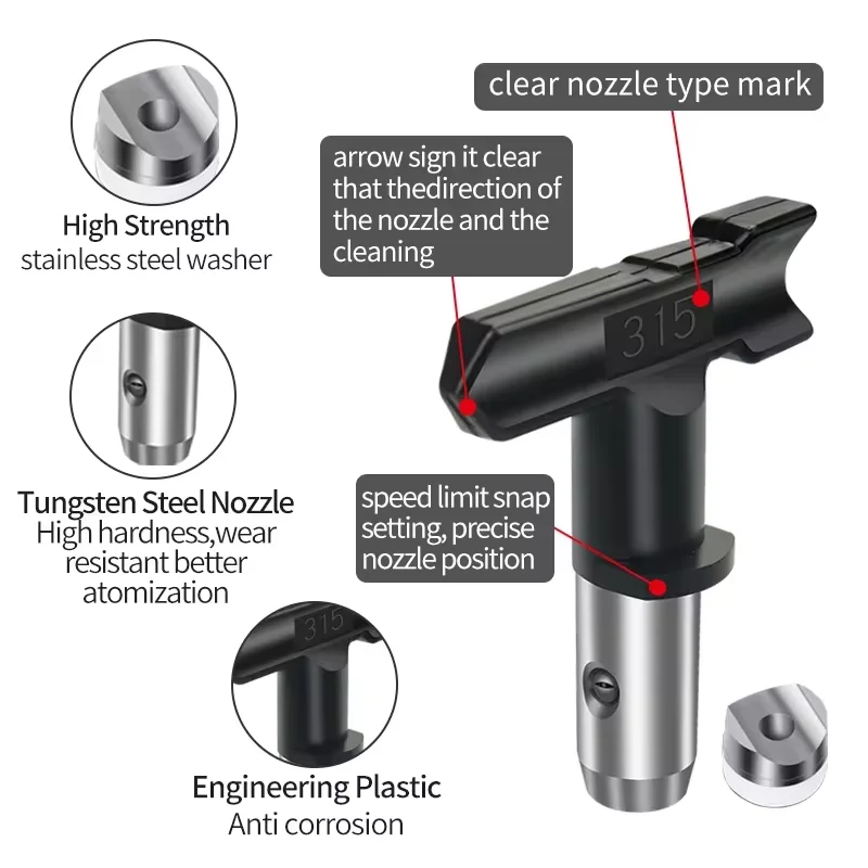 【Easy Assembly】: The airless paint sprayer tip is designed for hassle-free operation with no additional tools required. Simply insert the tip and spacer into the guard base, and secure by rotating—a quick and efficient assembly process.