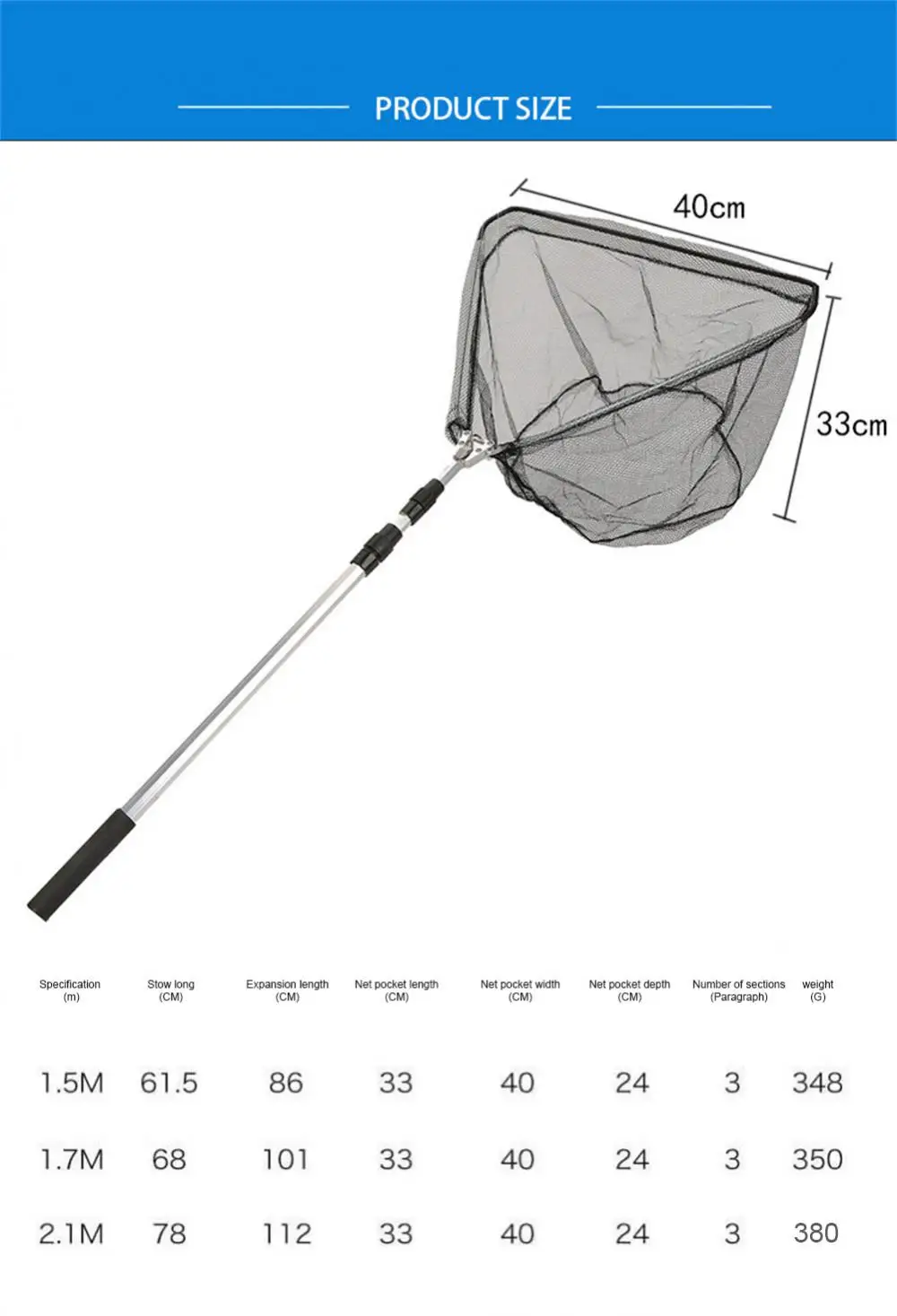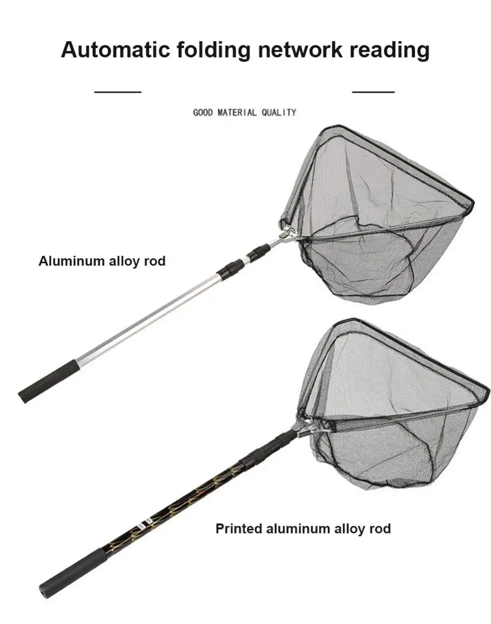 The fishing net with handle can be folded and retracted, and can be easily put into the locker or fishing rod locker.