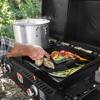 - AMPLE SPACE FOR FOOD PREP: The side table of our camping griddle can be used for placing serving spoons and spices, so everything you need for whipping a delicious spread is accessible and in reach. Lower bar designs keep everything within arm’s reach.