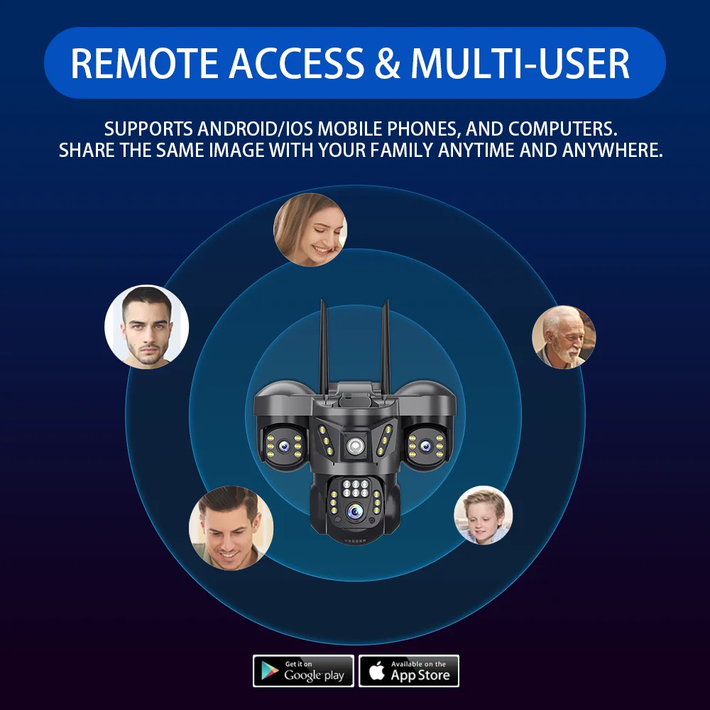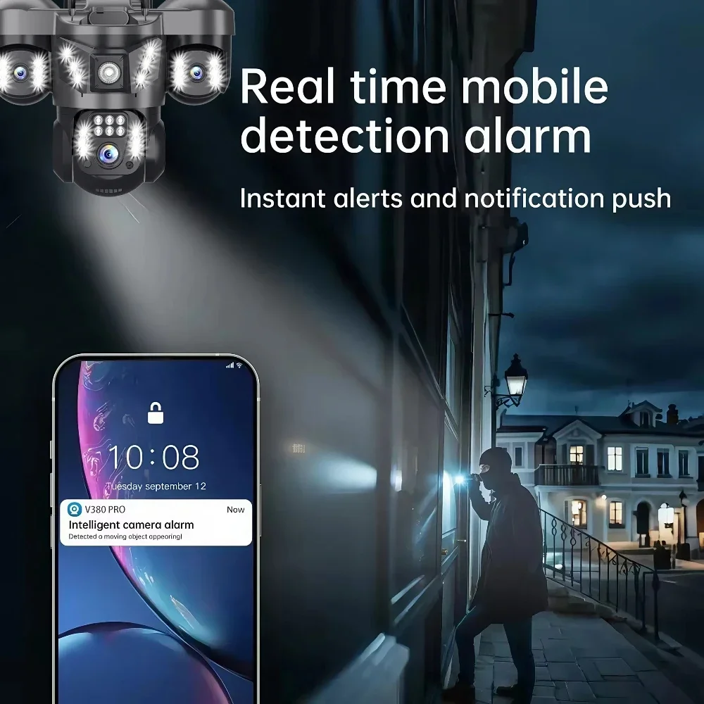 When detecting someone within range, the camera will sound an alarm and push the message to your smartphone via V380 Pro app.