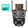 16MP 8K HD WiFi Camera Outdoor 12X Zoom Four Lens Three Screen Auto Tracking Security Protection 4K PTZ Video Surveillance CCTV
