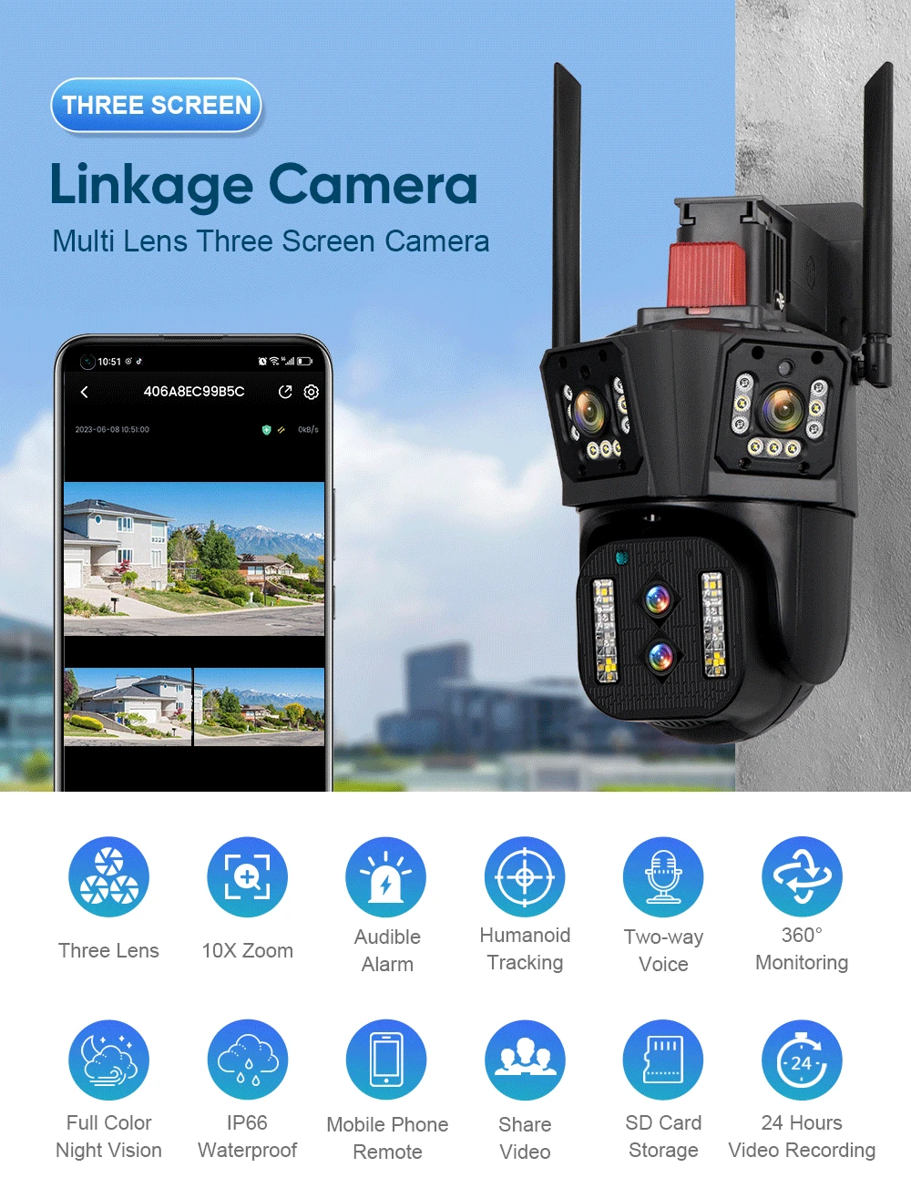 * 6K camera supports Three screen real-time monitoring. 360 ° without dead corners, allowing you to see more details, No zoom
