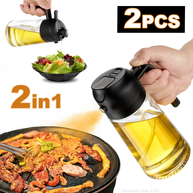 2-in-1 Oil Sprayer: with 2 convenient use modes of spraying and pouring oil, delivering a wide-angle, fine mist with quick presses and a steady stream with slow presses. This precise design ensures consistent coverage and control over your oil usage.