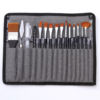 18pcs paint brush kit comes with 12 types of paint brushes, 1 scraper, 1 yellow sponge ball, 1 2B pencil, 1 Watercolor brush pen, and a canvas storage bag.