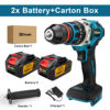 Good brushless cordless electric drill.I only don't know,why there on the batteries is not written V and Ah.Only is written some model number 398 V.