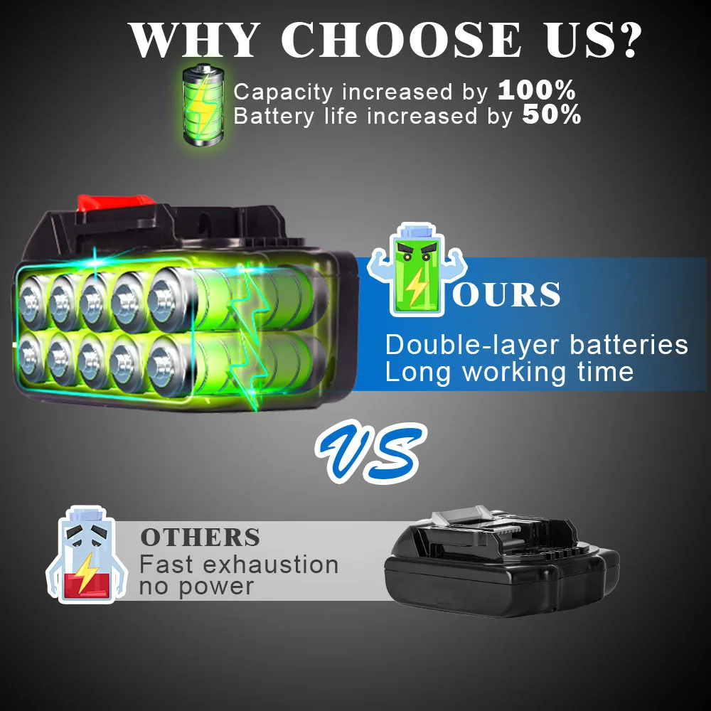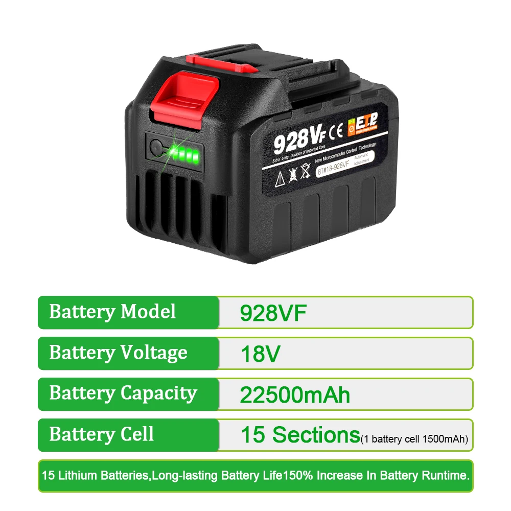 18V-21V Rechargeable Lithium Ion Battery High Capacity with Battery Indicator EU Plug For Battery Electric Power Tools