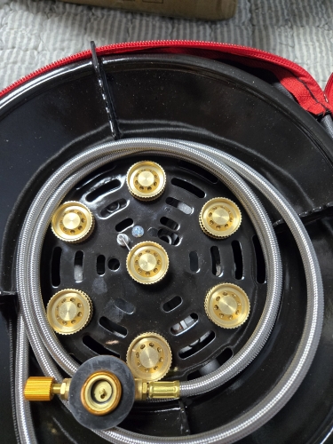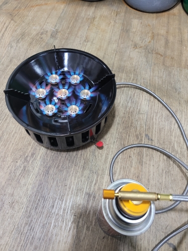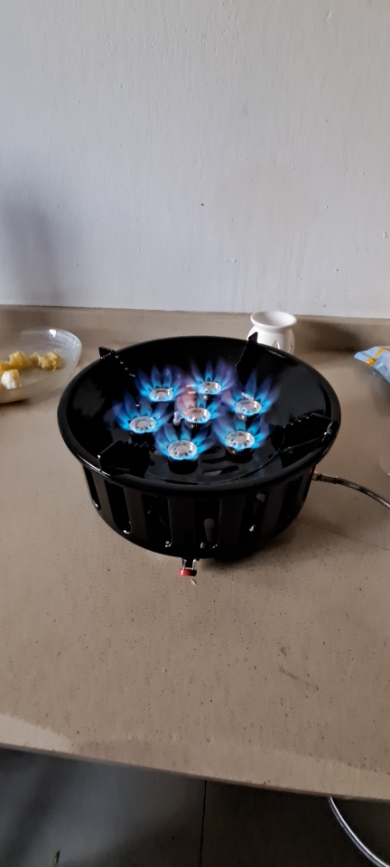 It is a great product, there is an adapter that can be connected to 3 places. The firepower is not a prank It seems to be the best product I bought this year If you go camping, people seem to ask. As much as the firepower is good, the gas consumption is high, but the advantage is that you can cook any dish quickly. Yes. The sound of the flame is not a prank when you raise the firepower maximum If you use a wok cooking for a regular stove or camping, the heat will gradually rise, but with this product, at an instant high temperature. You might want to cook. It's good.
