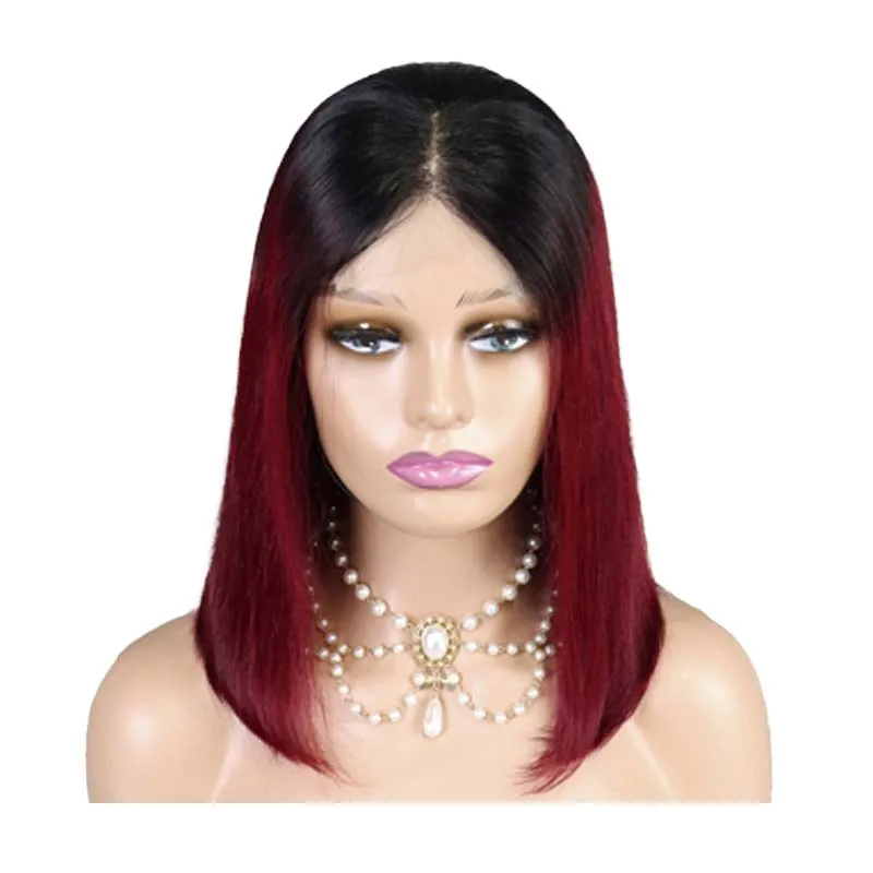 Item:Straight Bob Wig Ombre Red With Dark Roots 1B/99J Wig Free Part Straight Short Bob Wig Colored Wigs 1B/Burgundy (Ombre 99J Wig)