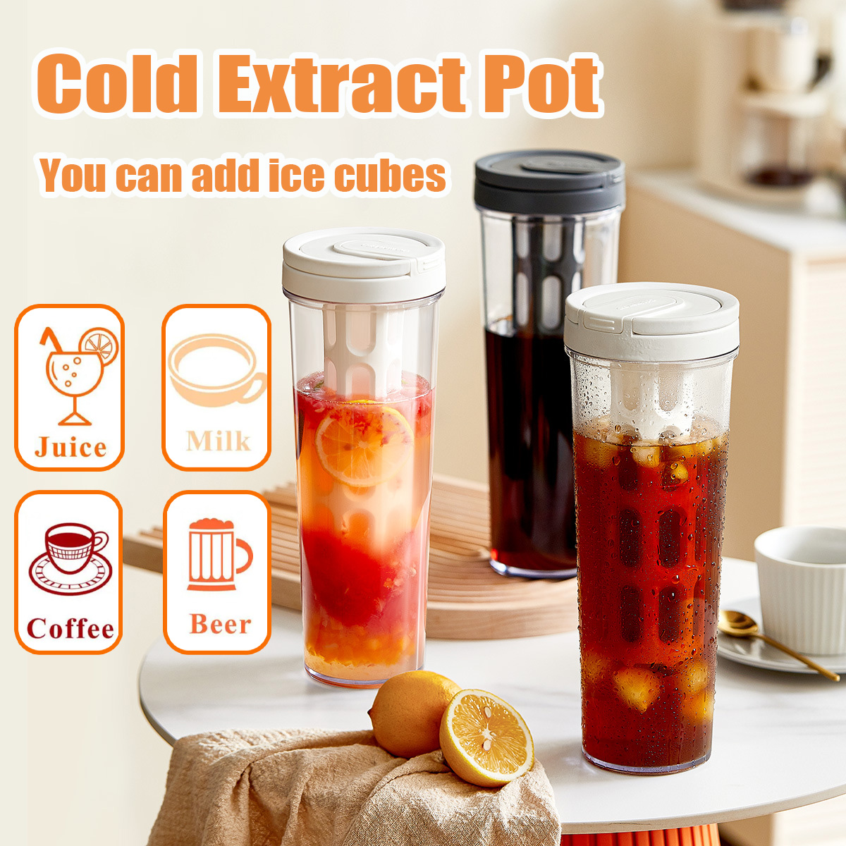 1L Manual Cold Brew Coffee Maker with Handle Refrigerator Water Bottle Summer Portable Juices Pot with Filter Ice Fruit Teapot