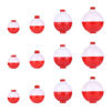 A: 12 x Float Ball (3pcs/each size) / size: 2.5 x 3cm (1 inch), 3.2 x 3.5cm (1.25 inch), 3.8 x 4.8cm (1.5 inch), 4.5 x 5.3cm (1.75 inch)