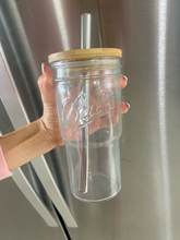 A nice glass cup with a jumbo straw. would appreciate if a straw brush was included.