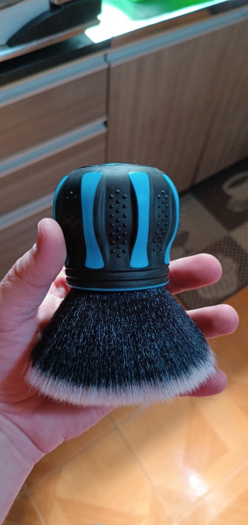 it's HUGE! comfy in the hand and very soft even for human face :) Perfect for car Detailer or Barber.