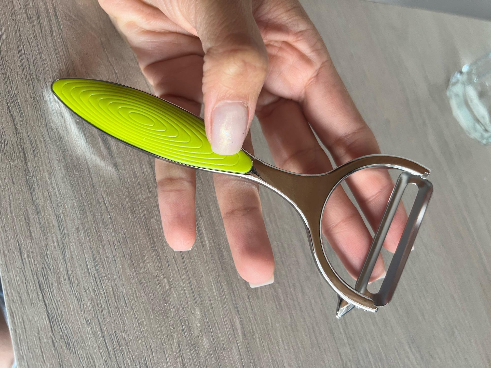 A good vegetable peeler, metal, it can last longer because the plastic ones break quickly.