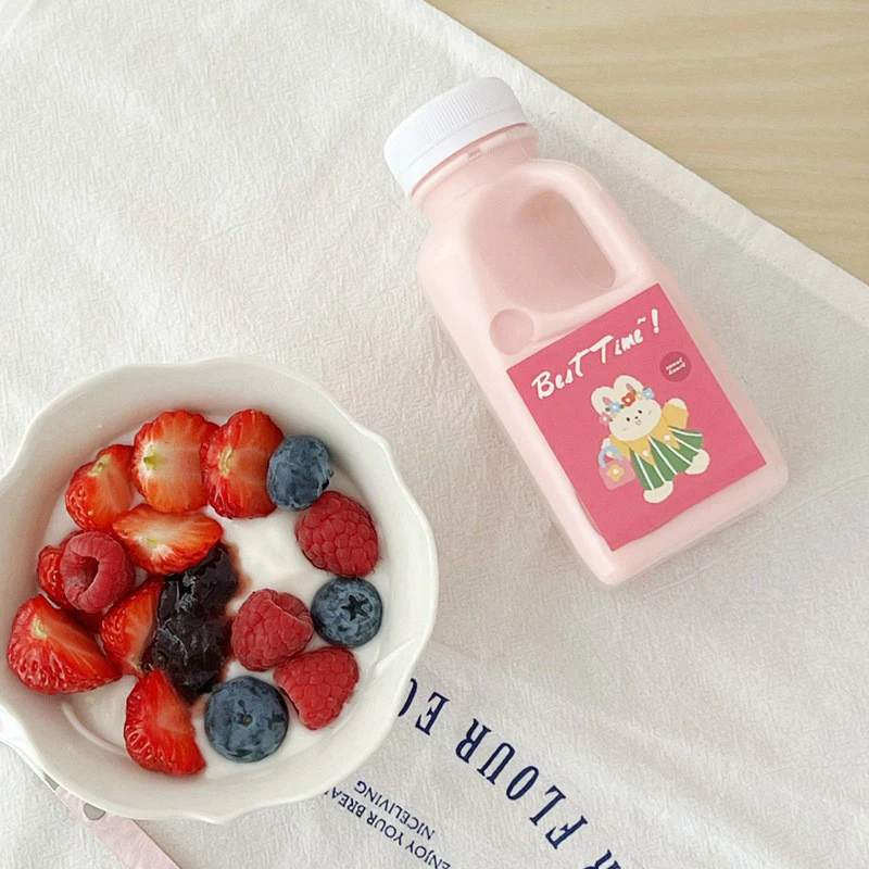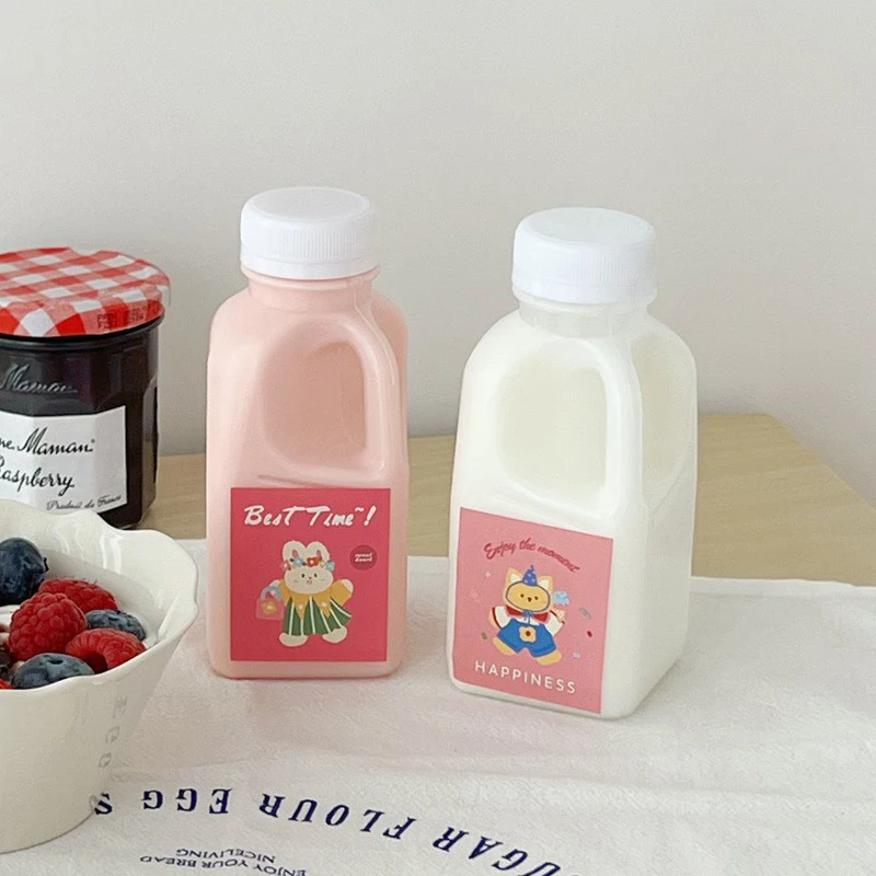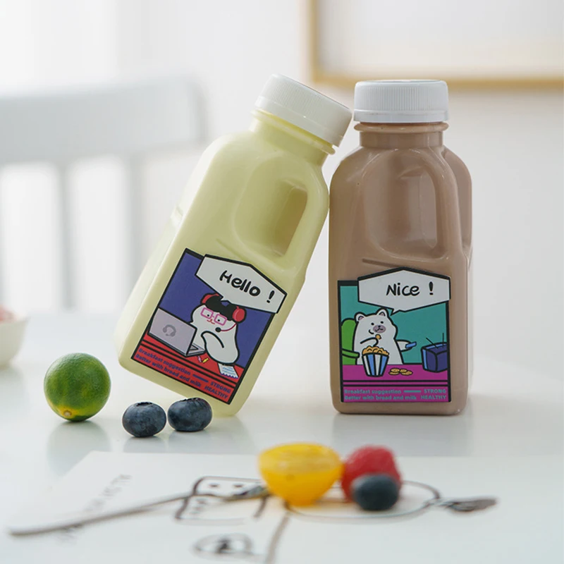 1PC Transparent Kids Water Bottle Plastic Juice Bottle PET Milk Beverage Bottle With Lid Camping Hiking Drinkware