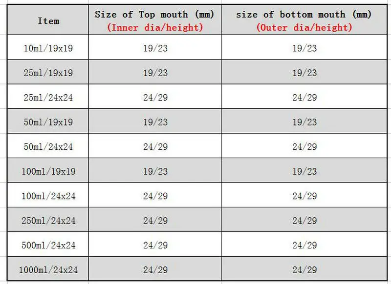 4. Capacity: 10/25/50/100/250/500/1000ml