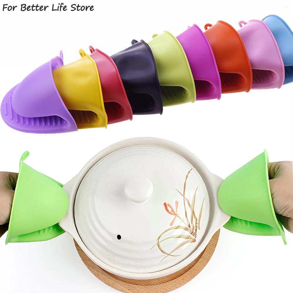 For Better Life 1PCS Soft Silicone Heat Resistant Anti-Scald Gloves Pinch Grips Thick Oven Mitts Kitchen Cookin Tool Hand Clip