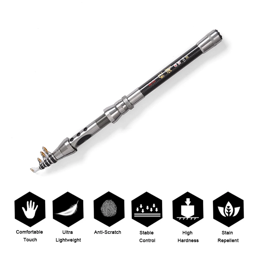 Fishing Rod: Made of high-density carbon fiber material, the fishing rod is lightweight, strong and durable. Telescopic design makes fishing rod easy to store and carry wherever you go.