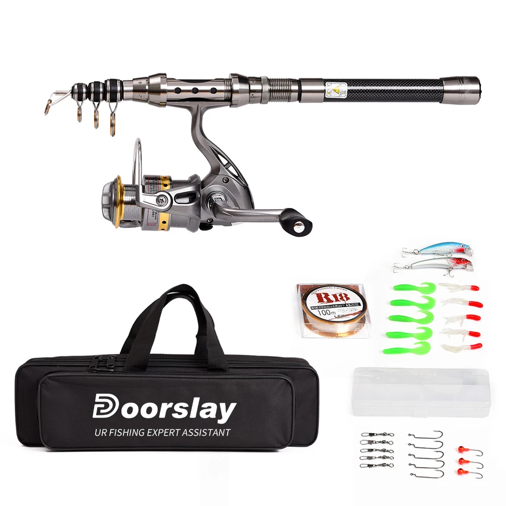 Complete Fishing Kit: 1 Telescopic Fishing Rod + 1 Spinning Fishing Reel + Various Fishing Lures + 100-Meter Fishing Line + Some Necessary Fishing Accessories, all of which are packed in a fishing bag, convenient to carry.