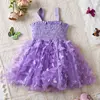2-6Y Children’s Clothing 2024 New Summer Toddler Wear Kid Birthday Party Suspender Princess Dress 3D Butterfly Cute Baby Clothes