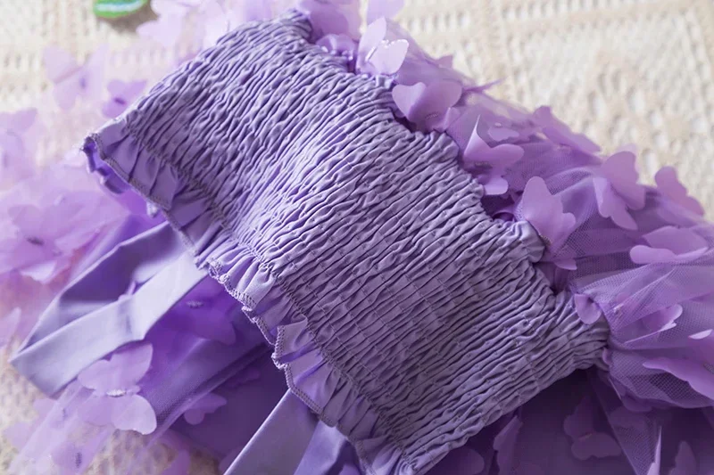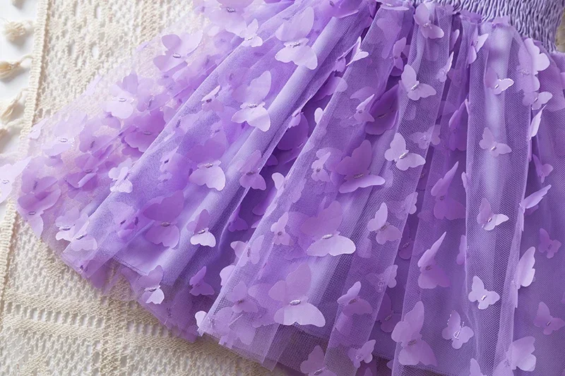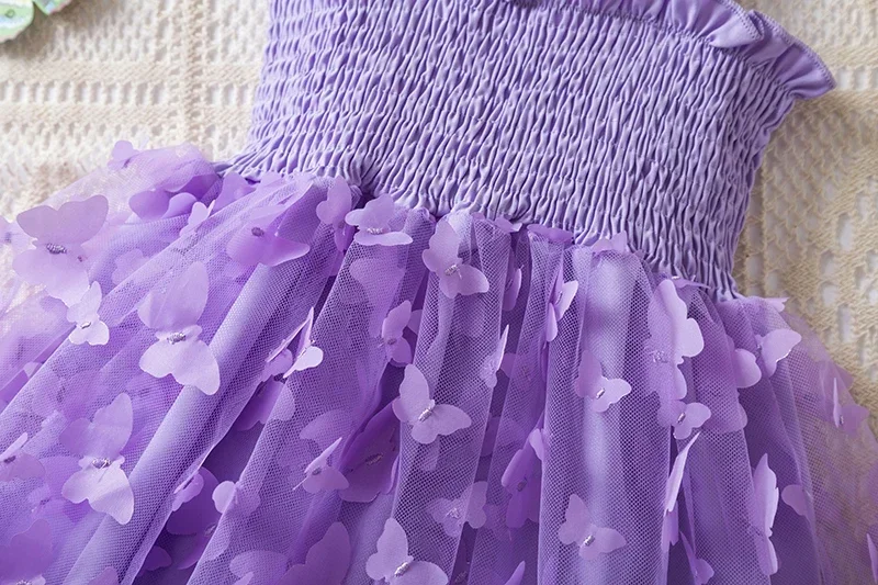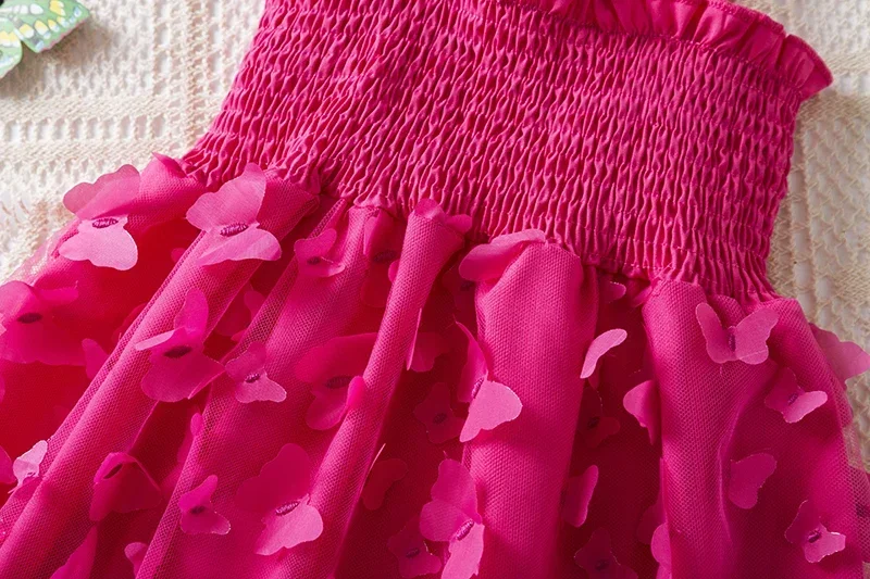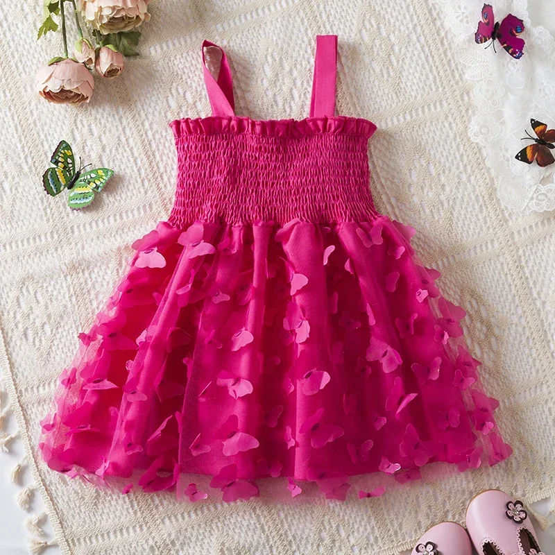 2-6Y Children’s Clothing 2024 New Summer Toddler Wear Kid Birthday Party Suspender Princess Dress 3D Butterfly Cute Baby Clothes