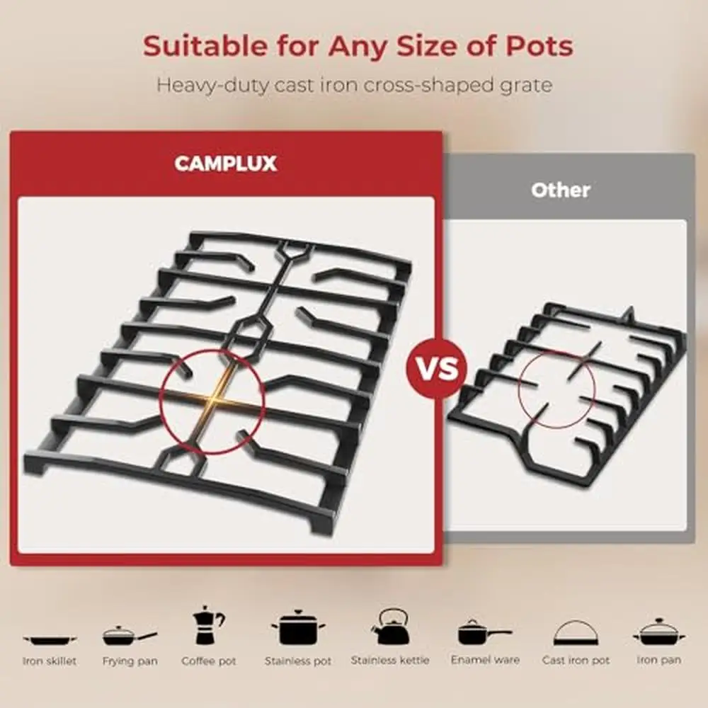 Cast Iron Cross-shaped Stove Grate – Propane gas stove grate is designed to handle pots of any size, eliminating the need for an extra grate when brewing coffee