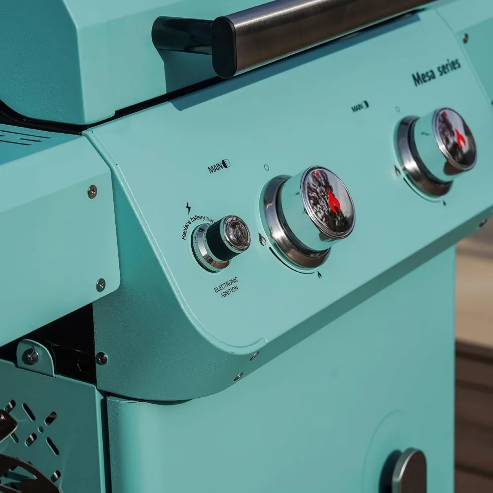 - HANDY TOOLS: The New Mesa series features convenient hooks for keeping your grilling essentials nearby. Plus, the built-in bottle opener is always ready to help when it’s time to crack open a cold one.