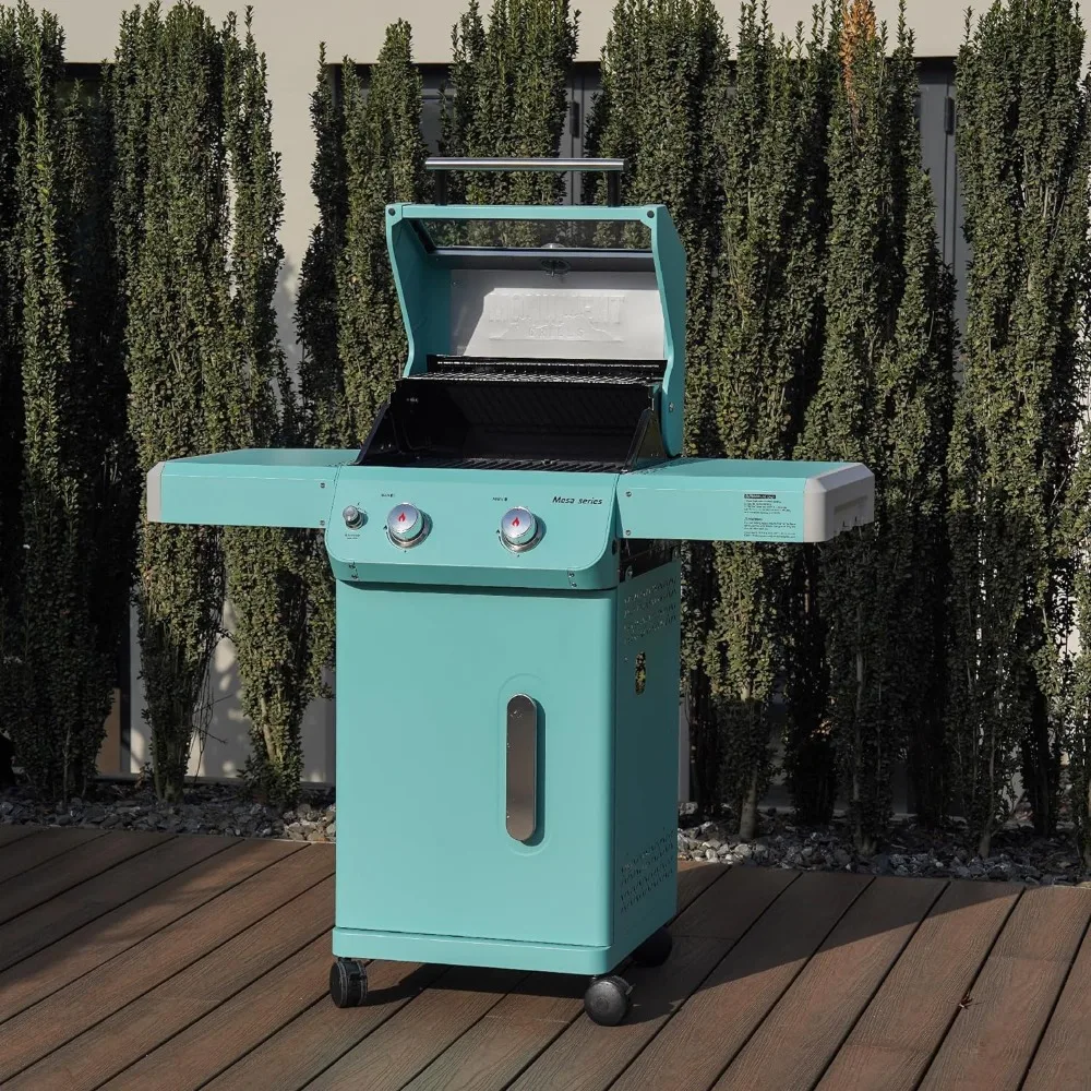 - MODERN DESIGN: The New Series Mesa200G Grill prioritizes overall integration to achieve a seamless and contemporary aesthetic. Rounded elements can be observed on the lid, shelves, cart, and handle, contributing to its modern appearance.