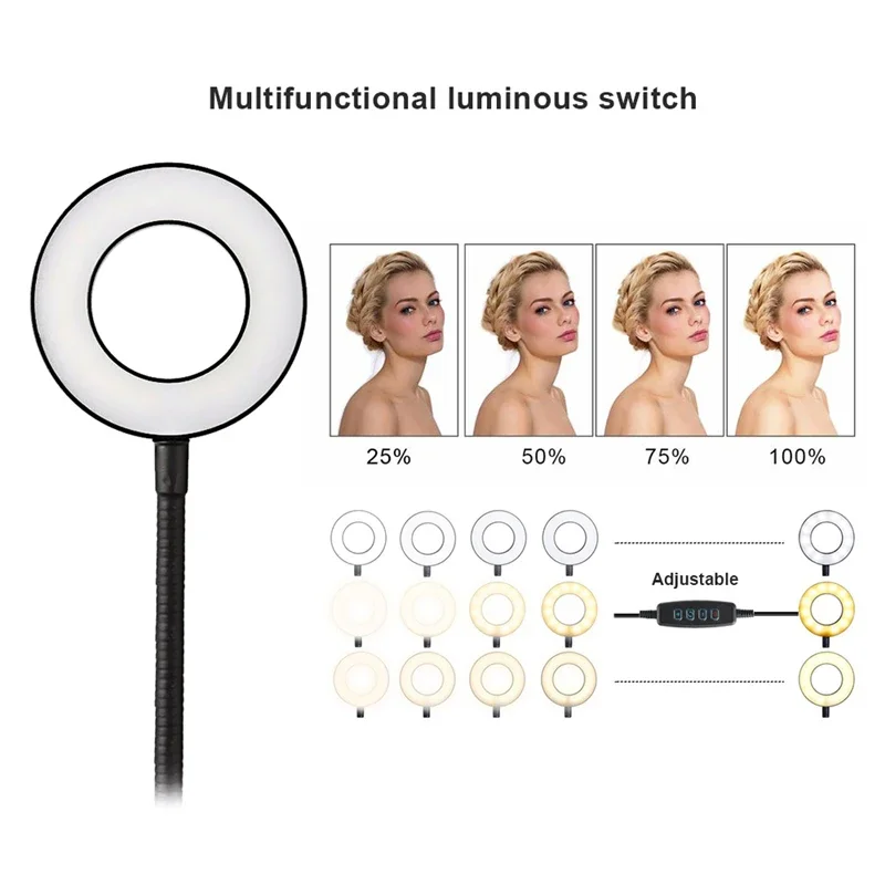 2 in 1 Mobile Phone Fill Light With Phone Holder for Selfie Live Digital Influencer Desktop Photography LED Video Ring Light