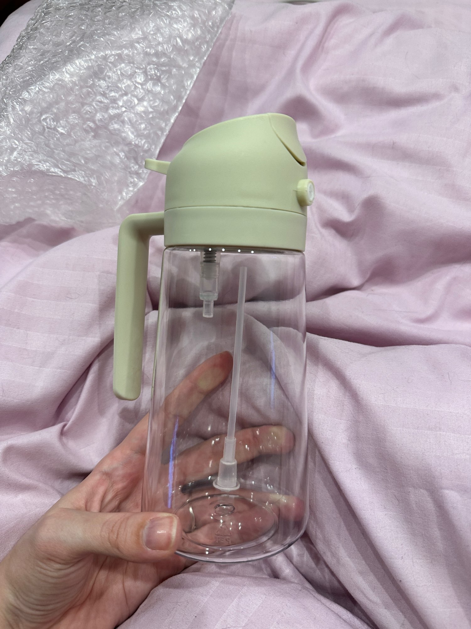 A few of our oil sprayer nozzles may have minimal water residue from quality checks, but please rest assured they have not been used. Just give it a few pumps for optimal performance.