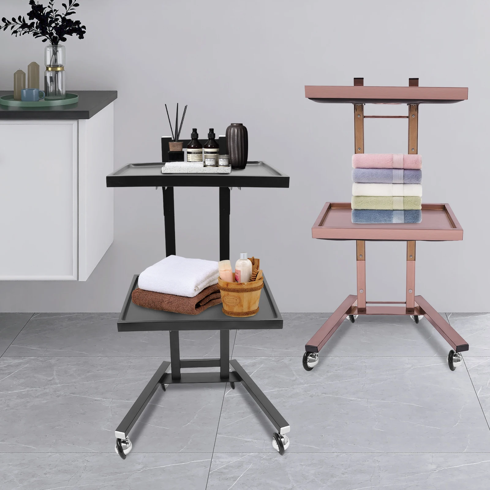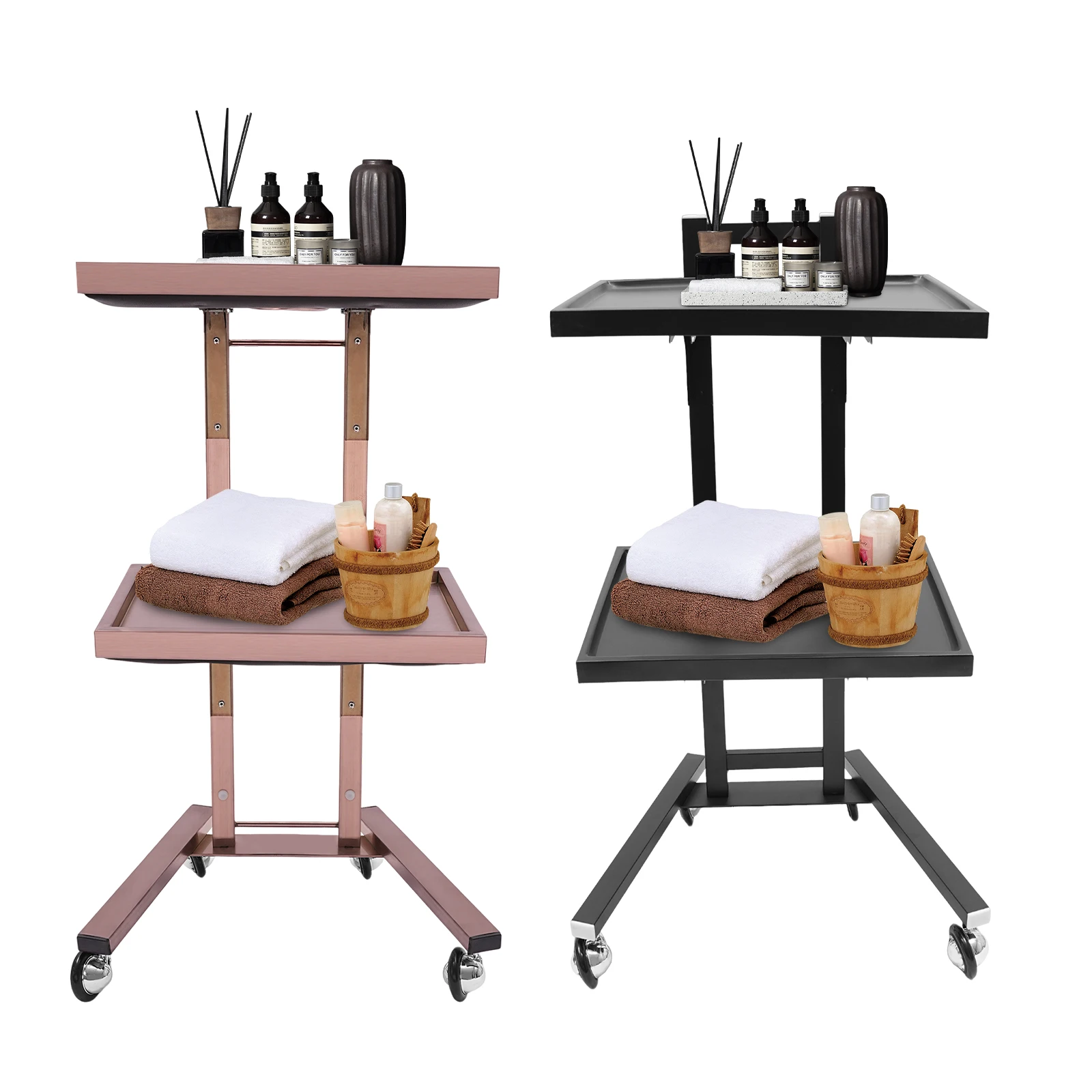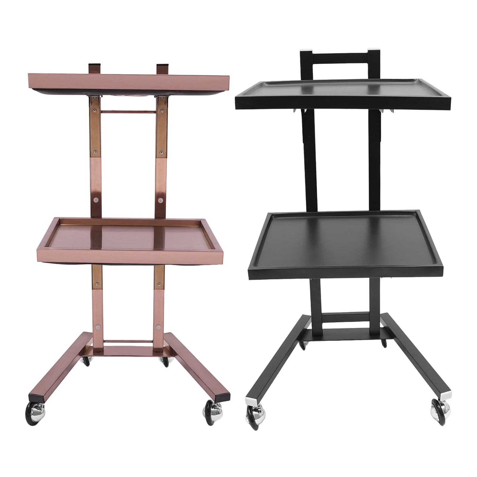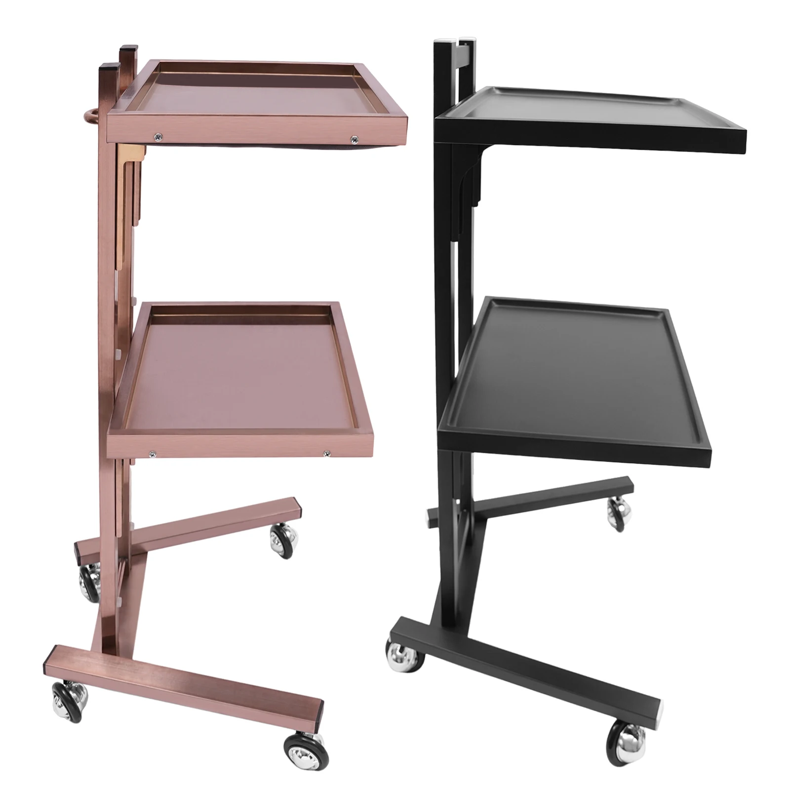 2-tier Large Capacity: It features a 2-tier design that allows you to place items with different functions in the appropriate zones. The trays provide plenty of space to store salon items or cosmetic appliances, and the top tray of the trolley also provides a large work surface for professional use.