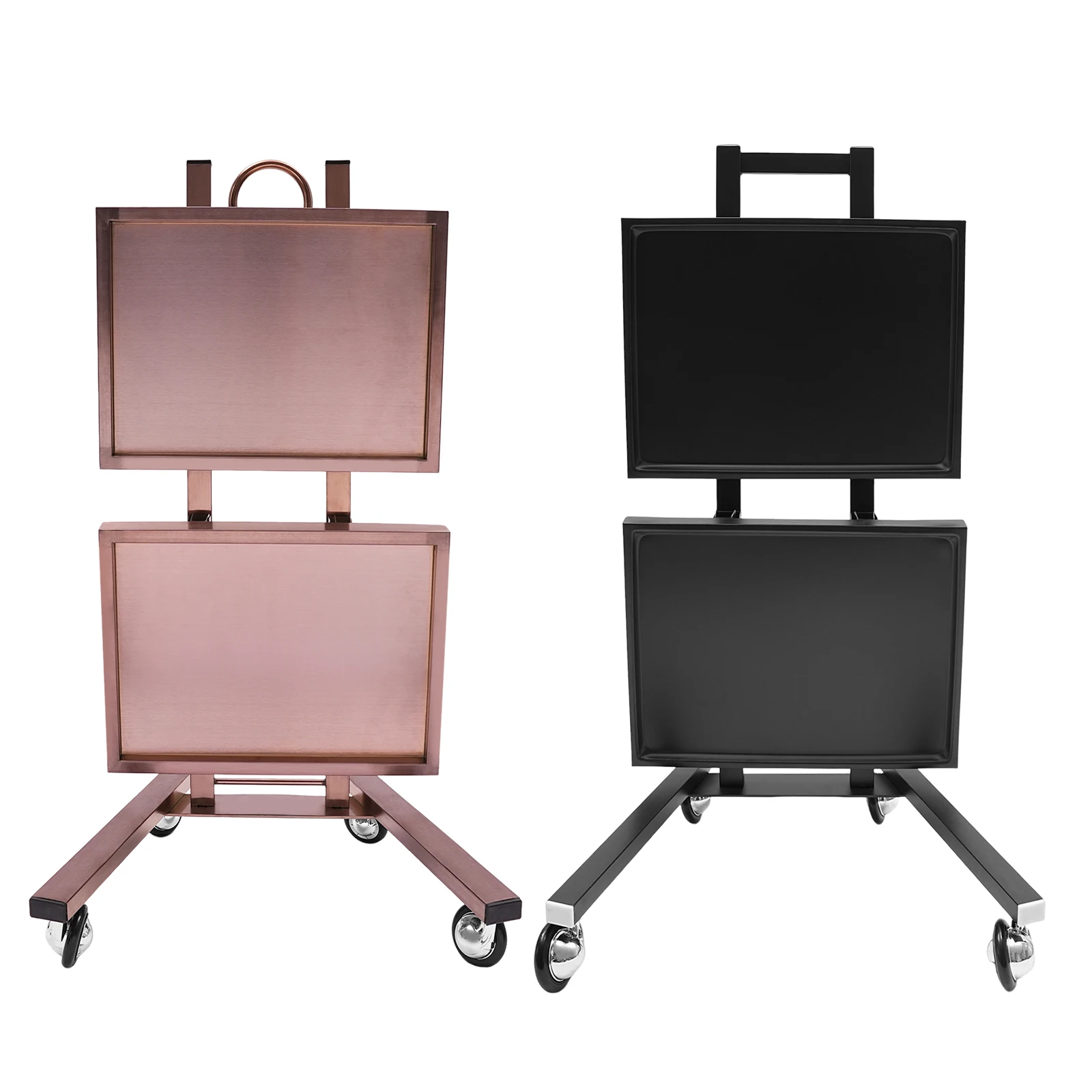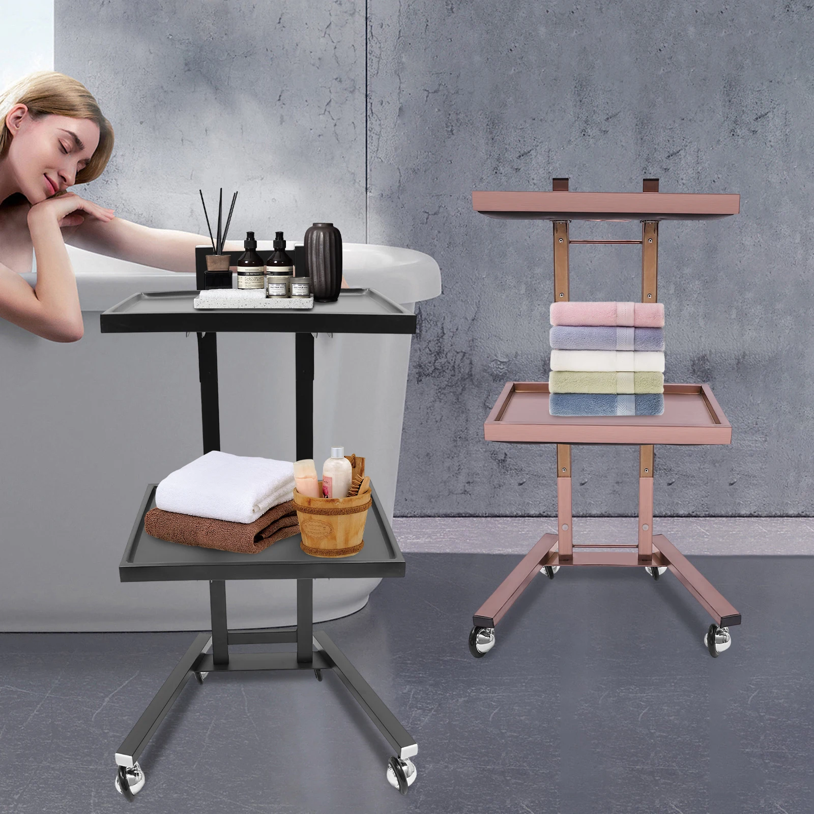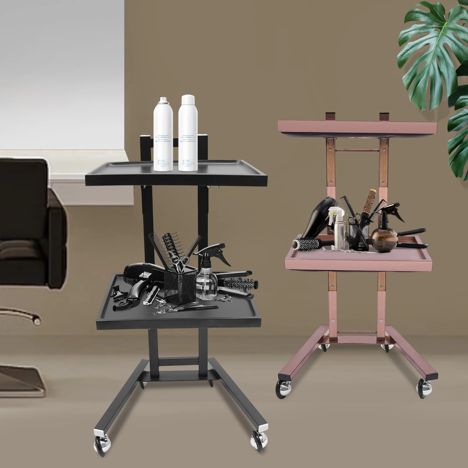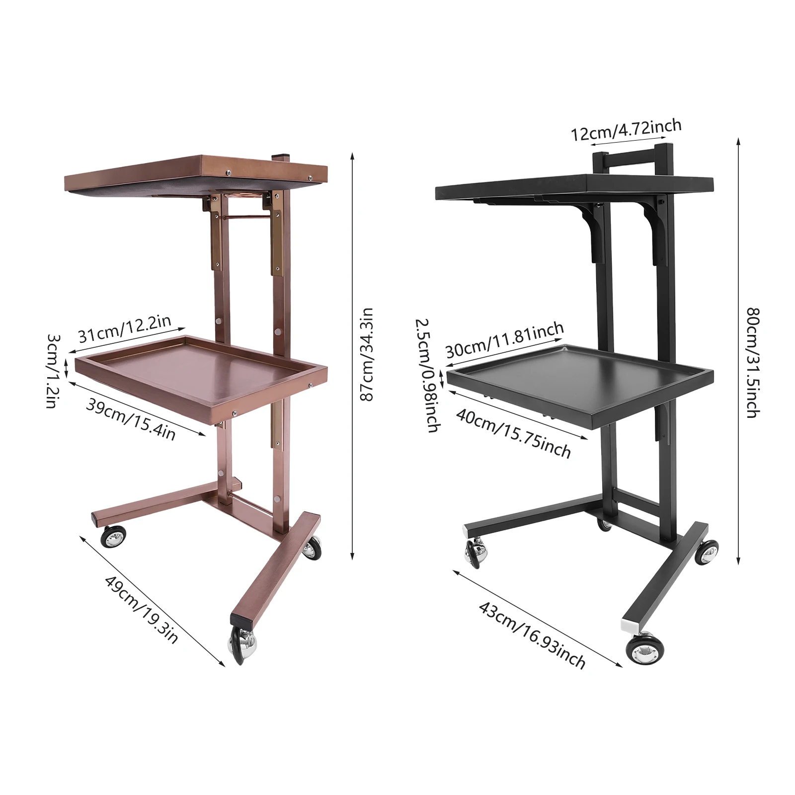 2-tier Large Capacity: It features a 2-tier design that allows you to place items with different functions in the appropriate zones. The trays provide plenty of space to store salon items or cosmetic appliances, and the top tray of the trolley also provides a large work surface for professional use.