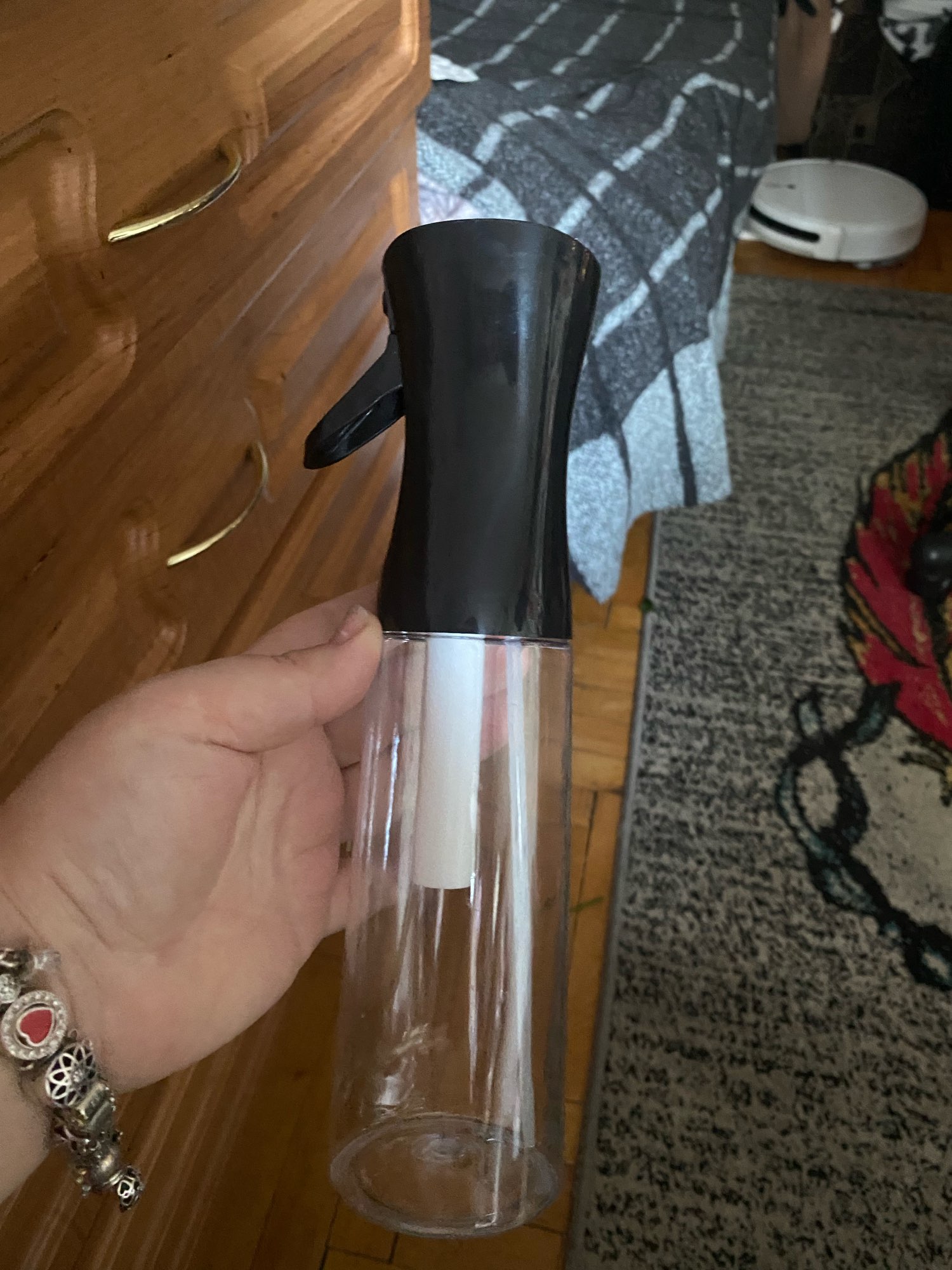 Convenient bottle. And looks beautiful. Sprays sunflower oil in the form of a very fine mist. I consider the size of 300 ml to be optimal. Delivered to Ukraine in 11 days.