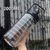 2000ML large-capacity sports kettle, portable plastic water cup, transparent straw water cup, outdoor sports water bottle
