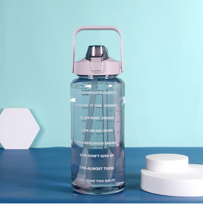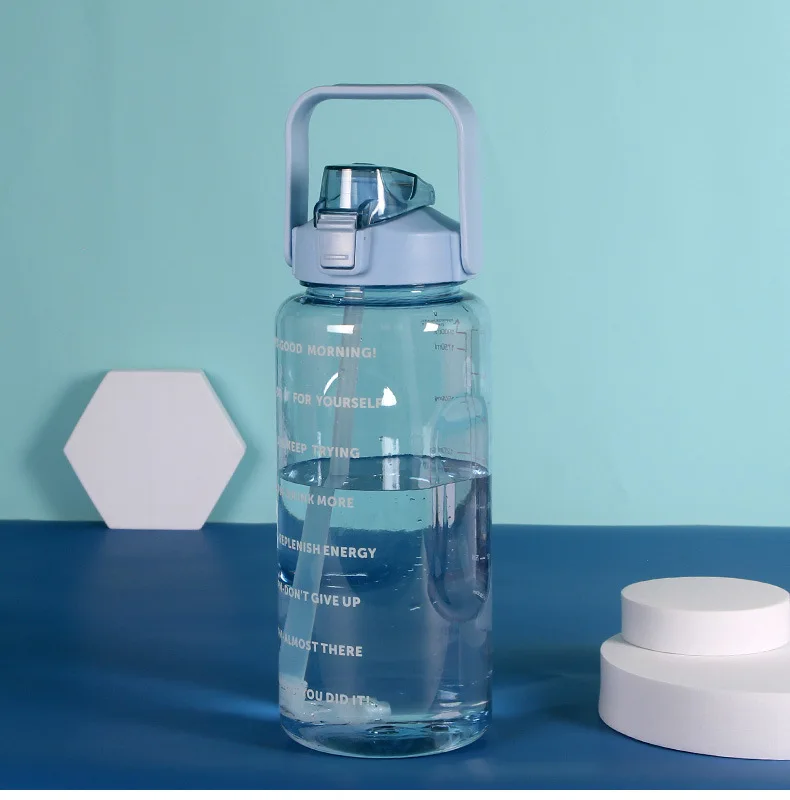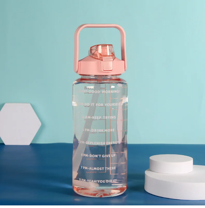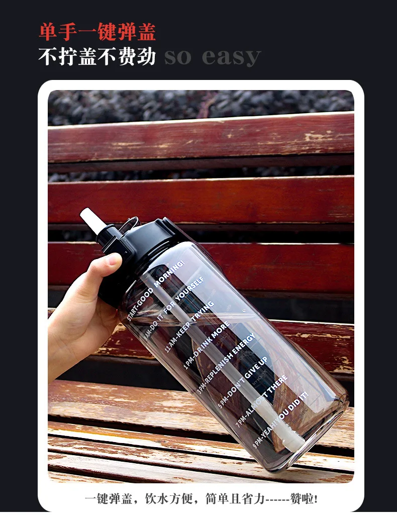2000ML large-capacity sports kettle, portable plastic water cup, transparent straw water cup, outdoor sports water bottle