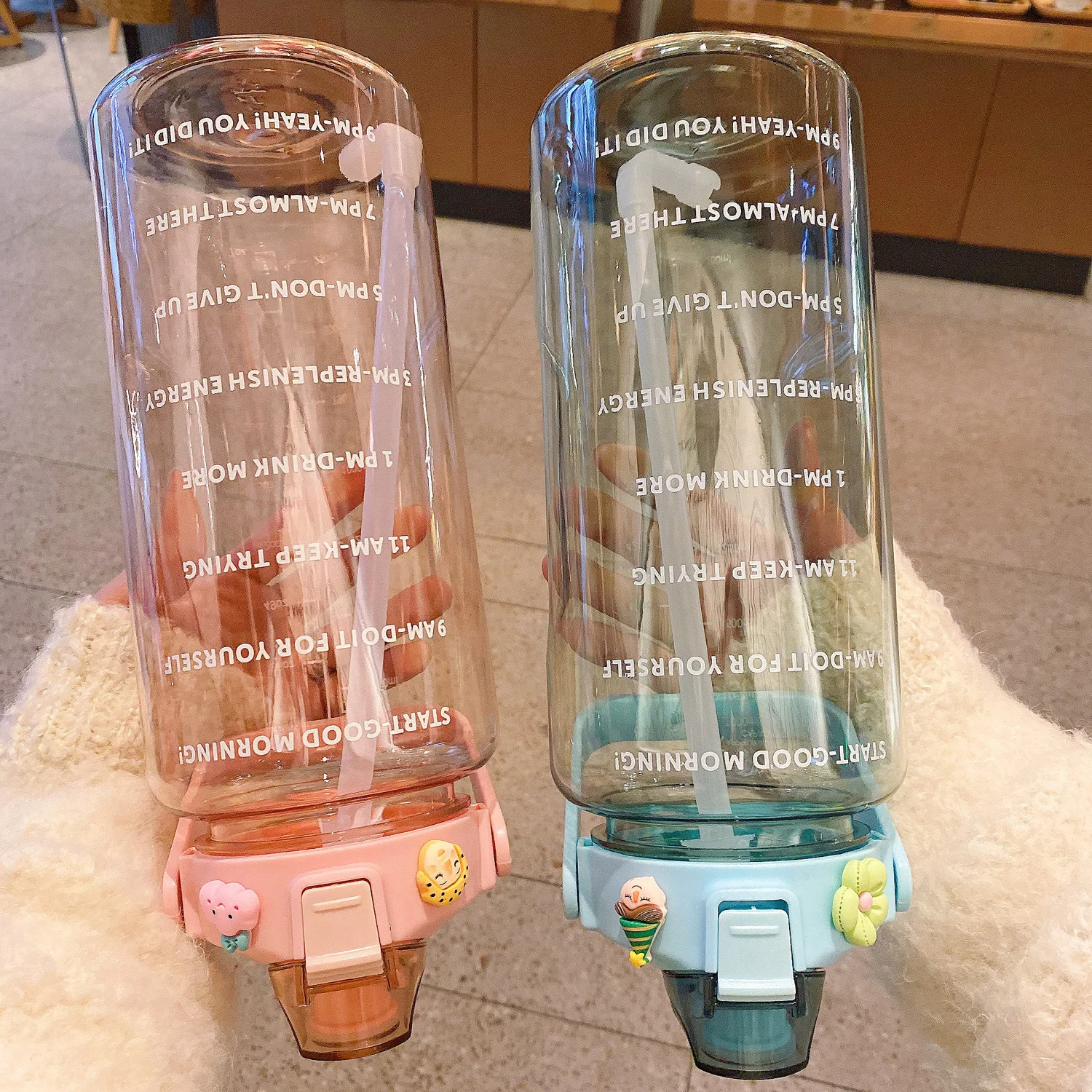2000ml Large Capacity Water Bottle Plastic Sports Water Cup Transparent Time Marker Water Bottles Outdoor Drinkware