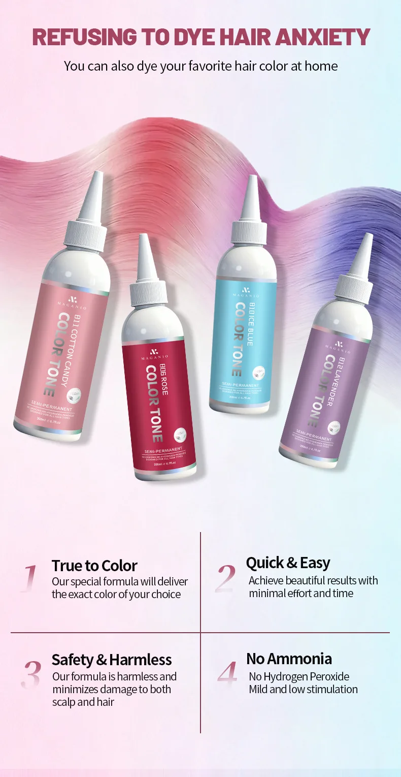 Temporary hair dye for semi-permanent hair coloring