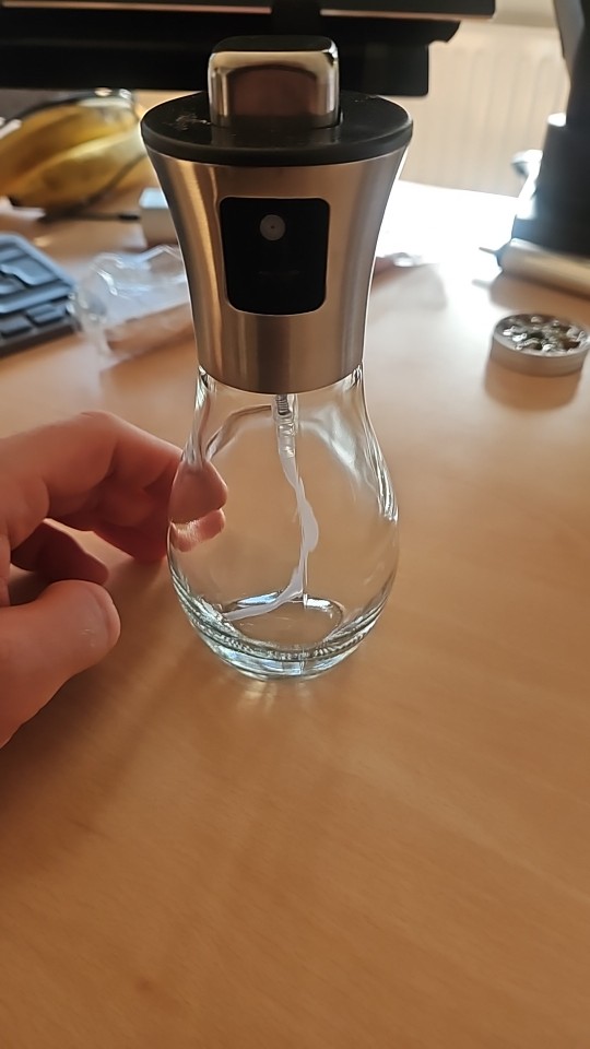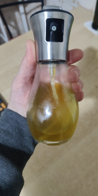 Good comfortable oil bottle. Makes oil "fog". So far it does not flow anywhere. Looks strong and durable.