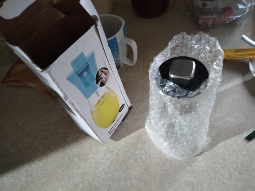 Works well and came pretty quickly. It is glass and the top of stainless steel