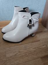 Ankle boots are good, they do not sit close on a thin leg, but on a full leg they sit close and fit the leg, thereby looking better. Color is not white, light gray with light pink powder, but nice